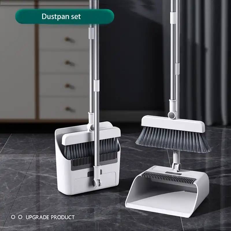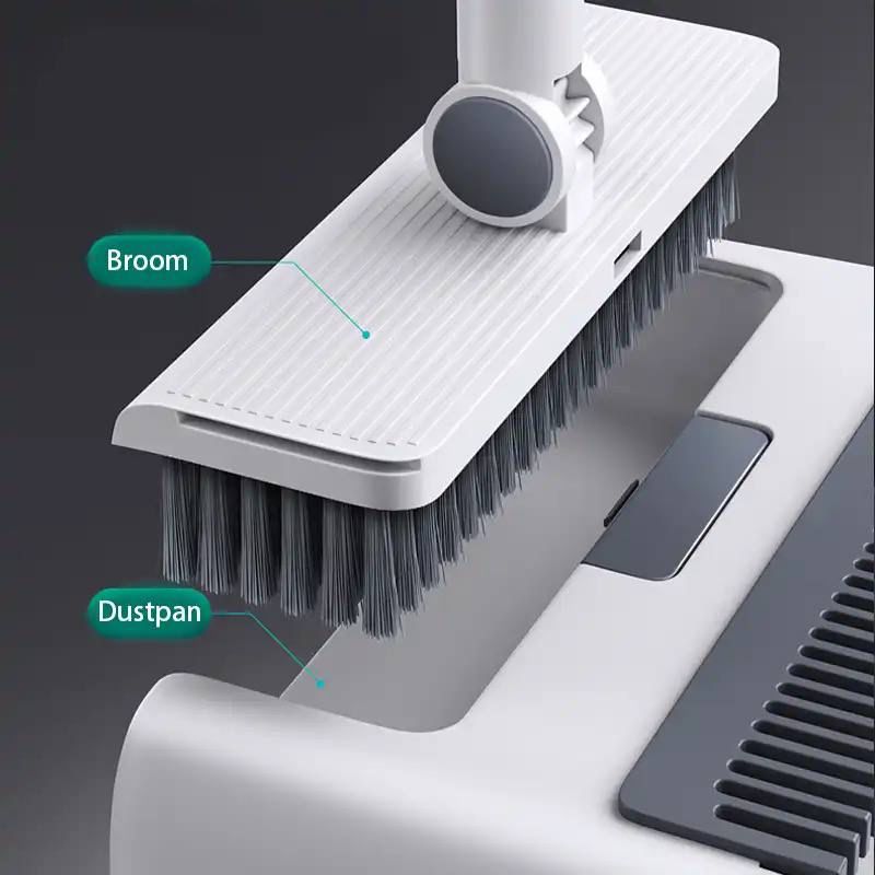 BROOM + DUSTPAN + BRUSH  + RETRACTABLE UNIQUE SPONGE MOP + MULTIFUNCTIONAL EXTENDABLE DUSTER