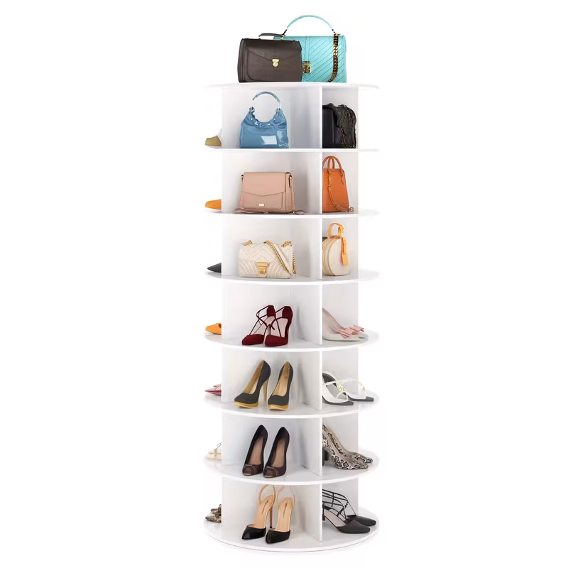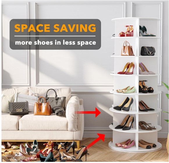 • 7-TIER SHOE DISPLAY HOLDER – Keep your home clean and keep track of your shoes better with this spinning shoe rack tower; Makes every shoe visible and saves so much of your room closet storage space